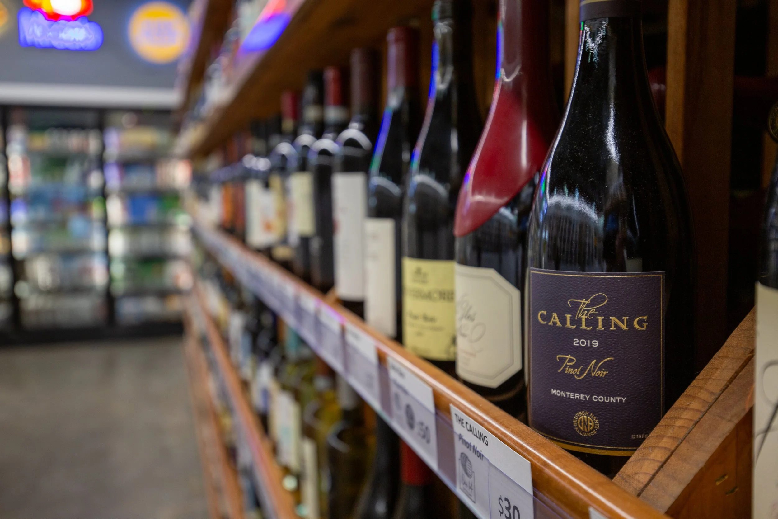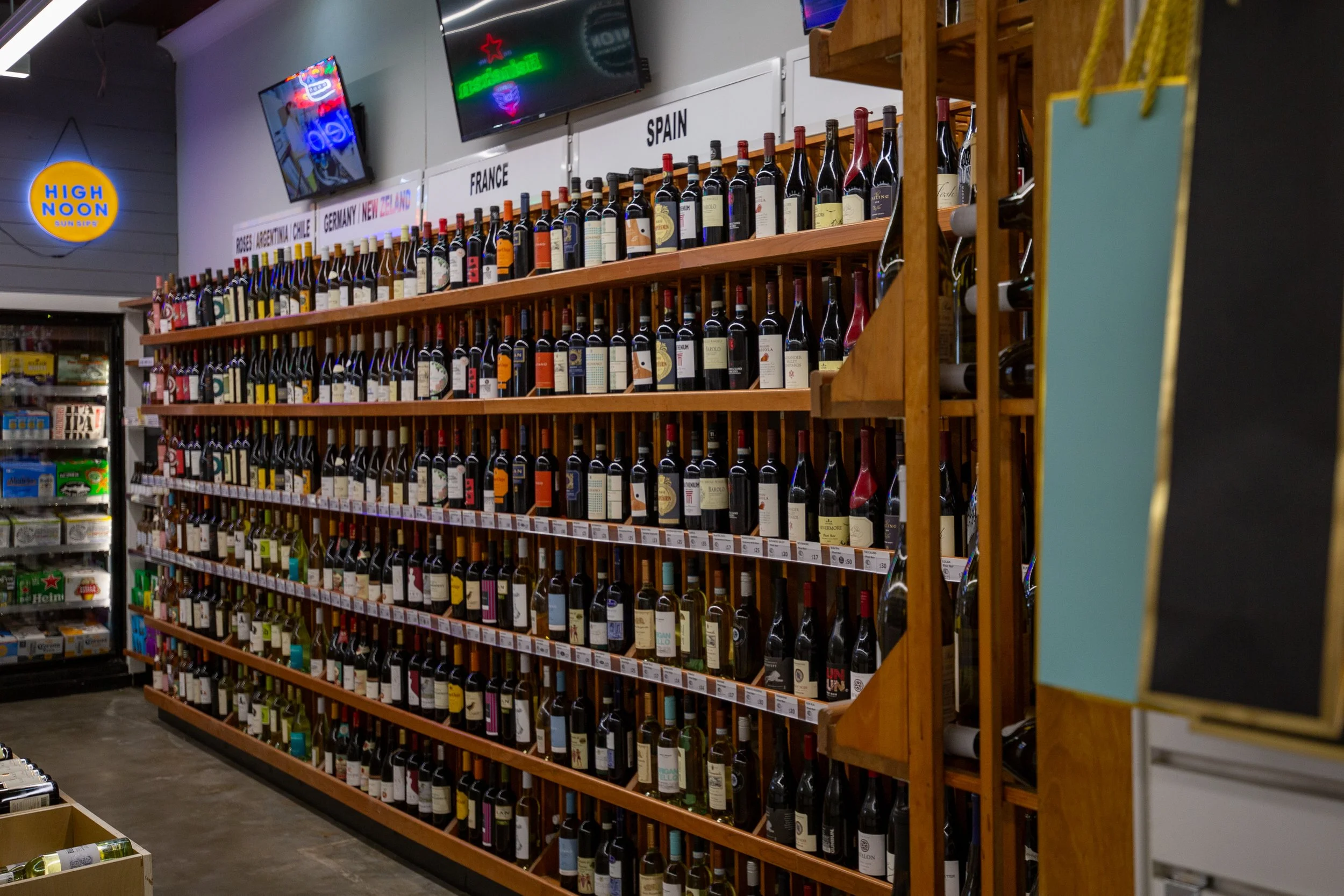Interior photo of Bin 14, highlighting a shelf of wines.